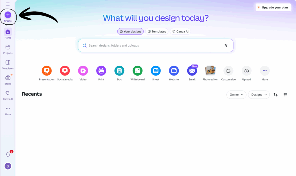 To start, you’re going to need to open your web browser and download Canva. Create an account using your email. The free plan gives you access to many design resources.